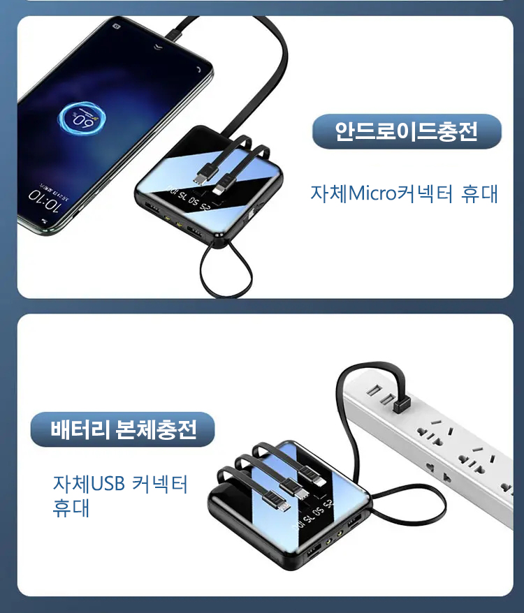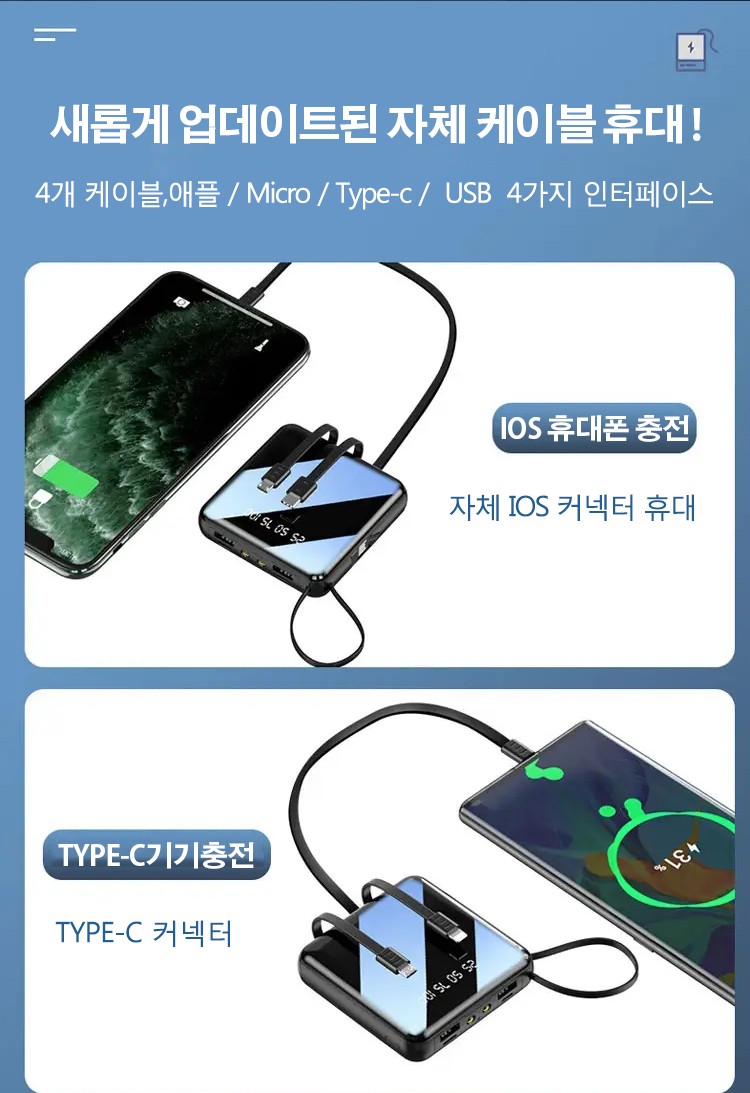 초대박 미니 사이즈의 휴대용 배터리,무려 4개 케이블에 4 인터페이스!동시에 5대의 휴대폰을 충전할수 있는 실용성 갑인 제품,기능성과 비주얼을 모두 갖춘 미니 휴대용 배터리!